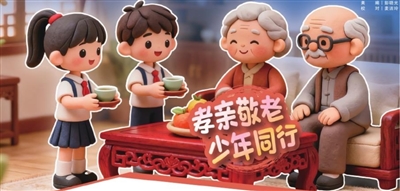 “最近突然降温了,放学回家后看到爷爷搓着手,我立刻接了杯热茶递过去。他笑着对我说‘这茶真暖’,我也觉得心里暖暖的。”五年级的唐甜恬说。五年级的杜堇睿则会在空闲时间帮爷爷按摩肩膀。“我一边按,一边和爷爷聊天。他说肩膀感觉好多了,还夸我力气大。我才发现,原来‘孝顺’就是这些小事情,让爷爷感到舒服、开心,就够了。”