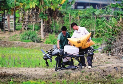 “今天我们要为五十亩荔枝、龙眼果树进行保花保果杀虫作业,预计两小时就能完工。”张友一边紧盯无人机飞行轨迹,一边介绍,“植保无人机在果树顶部喷洒药剂后,借助风场流通,相当于给果树来了一场雾化‘药浴’,浸润得更彻底。”相比传统的人工喷药,无人机喷洒不仅更均匀,还能大大节省药剂、人力和时间,大大提高了农业作业效率。
