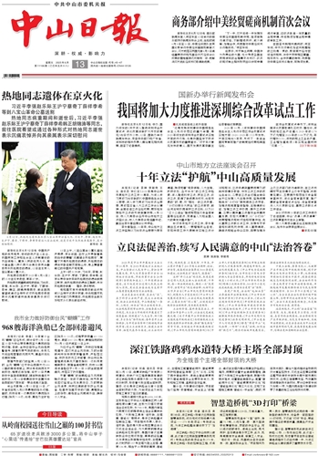 国内统一刊号:CN44-0126 代号:45-47 中山日报社出版 Email:zsrbnews@163.com
