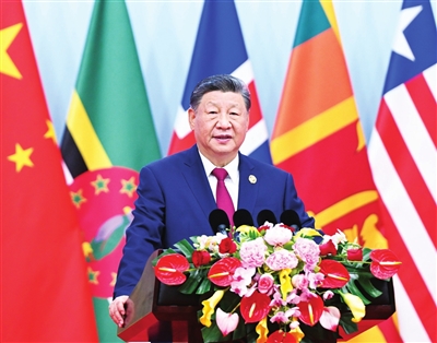 金秋时节,天朗气清。国家会议中心会场内,各国国旗和联合国旗帜组成恢弘旗阵。