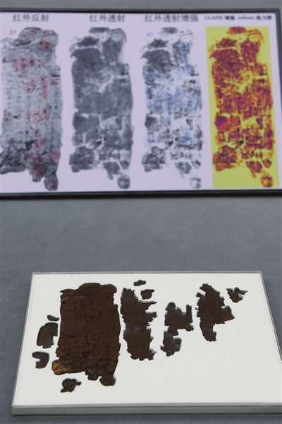 记者了解到,帛书于今年9月10日运抵湖南省博物馆后,已完成14天环境适应观察,经无损评估后保存于恒温恒湿环境中。目前,馆内已完成全部帛书的标准化影像采集,并在一片未完全剥离的帛书上发现肉眼不可见的墨迹字样40余个。
