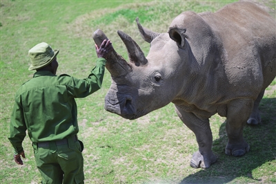 肯尼亚奥尔佩杰塔自然保护区的“娜金”及其女儿“法图”是全世界仅存的两头北方白犀牛,它们均为雌性。最后一头雄性北方白犀牛“苏丹”已于2018年3月死亡。科学家们近年来一直在尝试借助辅助生殖技术、基因技术等方式延续该物种。