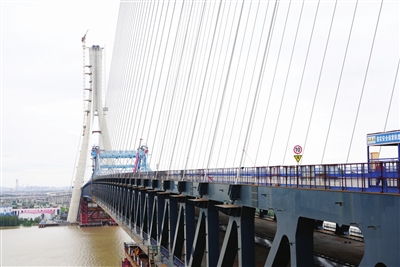 当天上午10时,秋风猎猎,距离水面50米高的香山大桥桥面一派忙碌,已安装完成的斜拉索在风中如挺拔的银柱。现场正紧锣密鼓地检查设备、调试参数,为合龙段吊装做足准备。