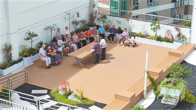 而在文化适配上,中心的用心也让长者们倍感亲切。七楼专区的护理团队全员精通粤语,日常护理融入晨间早茶、午后休憩等港式习惯;文娱活动涵盖麻将、粤剧鉴赏、粤语童谣合唱,连公共区域的公示栏都用繁体字,菜单上还特意标注粤语读音。数据显示,周年回访中,88%的长者表示“环境舒适度提升显著”,整体心理健康指数平均上升25%,300平方米的空中花园日均使用率也达到95%。