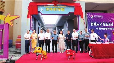 “让每个孩子都闪亮未来,在自己喜欢的赛道上绽放风华,拥有人生出彩的机会。”丽景学校党支部书记、校长刘苗苗表示,少年科学院的成立是学校紧扣国家“教育——科技——人才”一体化发展要求的举措,在少年科技人才培养上“三箭齐发”:一是进行场域打造,300多平米的课程空间,配置了VR/AI体验、宇树机器人、机器狗,设有Stem、信息学、3D打印、无人机等功能区,还有天文图书馆、文史哲法图书室,注重科技与人文的融合;二是建设信息课程体系,着眼兴趣、特长、专长“三阶”,构建课程、资源、评价“三维”,发展学生科学素养、创新能力、科学精神、科技专长“四核”;三是与中山纪中、一中、烟洲、永安、实验等高中合作,进行初高一体贯通培养。