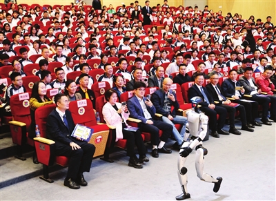 11月22日,中山市华侨中学少年科学院成立仪式暨第八届创客节隆重开幕,机器狗、下肢隐蔽助力外骨骼、无人机编队等前沿科技展演,让创客节化身为沉浸式的科学嘉年华。本报记者 文波 摄