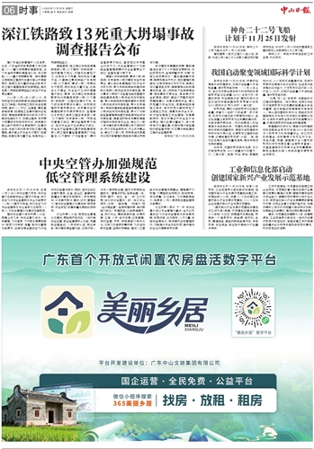 国内统一刊号:CN44-0126 代号:45-47 中山日报社出版 Email:zsrbnews@163.com