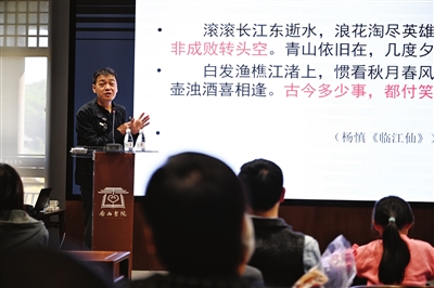 讲座在一首明代杨慎的《临江仙》词句中开场。“白发渔樵江渚上,惯看秋月春风”“古今多少事,都付笑谈中”,刘伟说渔夫樵夫本是隐于山林之人,为何在微醺之际总要谈论“古今多少事”?这种忍不住介入历史的冲动,正是理解中国隐士文化的关键。