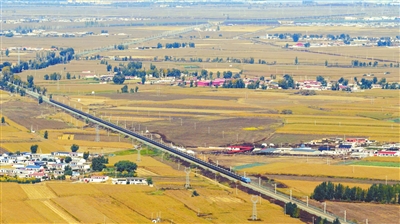 12月8日,重载群组列车在试验开行(无人机照片)。
