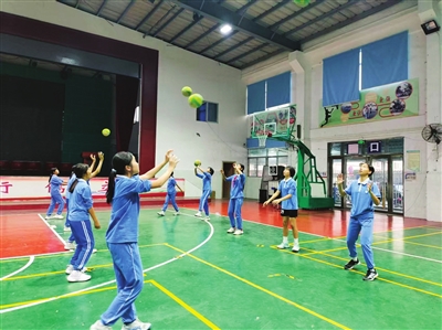 最让冯嘉镇动容的是孩子们的坚韧。有队员崴脚后,简单冰敷就坚持完成训练;低年级队员技术跟不上,高年级学长学姐周末返校“传帮带”,手把手纠正动作。“她们不仅在球技上成长,更懂得了责任与担当。”冯嘉镇感慨道。而从气排球转向硬排的关键三个月,成为团队进步的“加速期”,孩子们咬牙适应球体重量与击球力度的变化,为省赛夺冠打下坚实基础。