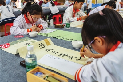 12月17日,三角镇举行廉洁文化现场书法比赛。 本报记者 黄艺杰 摄