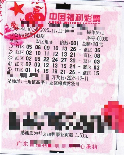 好运并未停歇。紧接着,2025年12月11日晚,中国福利彩票“双色球”第2025143期开奖,当期全国共中出7注一等奖,单注奖金8038443元。其中1注再度花落中山,由中山市三角镇高平工业区锦成路35号的44110758号福彩销售站点售出。