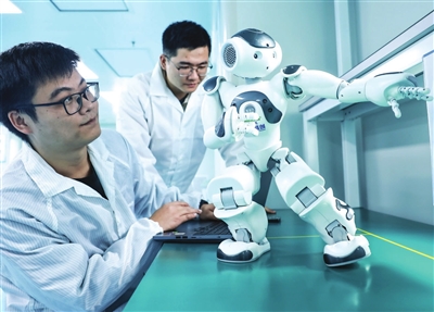 1月5日,在盛视科技股份公司华中总部武汉研发中心,技术人员在调试人形机器人。新年伊始,各地企业铆足干劲赶订单、忙生产,力争首季“开门红”。 新华社 发