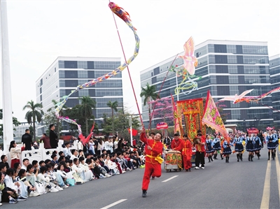 迪茵公学突破传统舞台形式,首创“全景沉浸式文化巡游”。全校近万名师生家长共同参与,将麒麟舞、醉龙等本土非遗与民族服饰秀、科技方阵融为一体,打造了一堂行走的“思政美育大课”。
