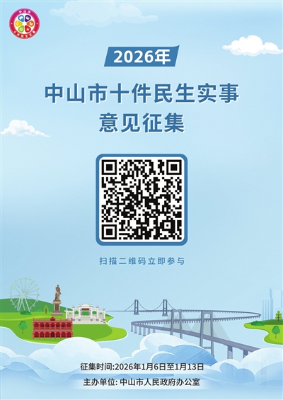 为广泛征求社会各界关于民生实事的意见建议,持续为民办实事、办好事,经过前期充分研究酝酿,市政府办公室遴选了15项民生实事项目,覆盖教育、医疗、养老等与市民生活息息相关的内容,作为2026年中山市十件民生实事候选项目。