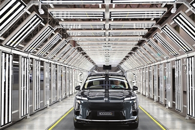 1月6日,在安徽省合肥市新桥智能电动汽车产业园蔚来第二工厂,蔚来第100万台量产车下线。