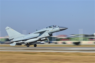 1月5日,东部战区空军航空兵某部组织实战化飞行训练,飞行员驾驶战机加力起飞。