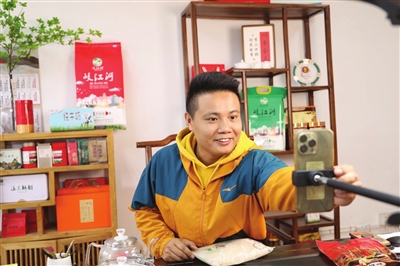 走上直播助农这条路,源于黄嘉伟一次实地走访。他发现一款本地大米品质优良,生产该大米的本土龙头企业有意愿开辟线上销售渠道。“他们一直以来专注于线下商超的生意,现在想通过抖音电商进行销售,刚好遇到了我,我就帮他卖了。”抱着试试看的心态,他在直播间进行推荐,市场反响令他惊喜。