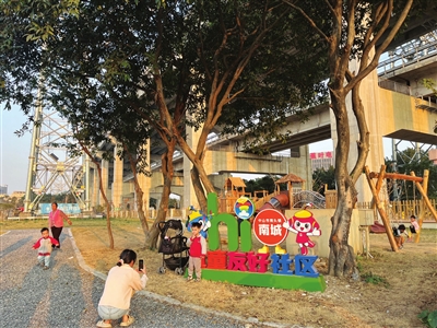 公园建设前,聚胜街沿途都是闲置地,堆满杂物和垃圾,卫生情况堪忧。去年初,伴随着“百千万工程”的持续开展,南城社区将30亩闲置地按照地块控规恢复功能,连片打造了儿童公园、生态稻田和游乐区,这也让南城社区成功入选市级“儿童友好社区”。