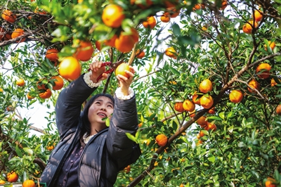 近日,重庆市黔江区阿蓬江沿岸数千亩柑橘林迎来收获季,当地通过举办采摘体验、线上直播等活动,拓宽柑橘销售渠道,推动柑橘出村进城,有效促进农民增收和乡村产业振兴。
