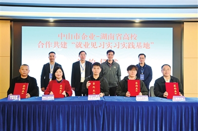 在此背景下,29所湖南高校主动来粤与中山开展政校企对接,涵盖吉首大学、湖南科技大学等本科院校,以及永州职院、湘潭医卫职院等特色职业院校。“我们的跨区域协同促就业,恰好与广东‘百万英才汇南粤’的战略相契合。广东是经济强省,就业岗位多、发展空间也大,湖南每年到粤港澳大湾区就业的毕业生占比超过20%。中山产业基础雄厚,也是我们的毕业生主要就业城市之一。”湖南省教育厅学生处副处长陈汉光介绍,中山是湖南省高校今年在广东开展跨区域协同促就业系列活动的首站。
