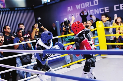 另一边,灵犀X2机器人能文能武——“文”能科普教育;“武”能带来酣畅淋漓的拳击表演;跳舞、踢足球、打地鼠更是不在话下,逗得观众眉开眼笑。小朋友们尤为喜欢它,表示“下次还要来和机器人朋友玩”。