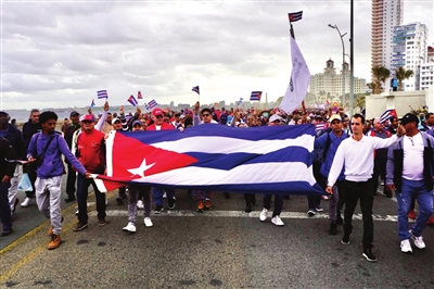 “你现在听到的这些声音,是在支持革命、支持菲德尔、支持一个有尊严且拥有自身发展规划的国家。”哈瓦那市民何塞·卡米洛在游行中对记者说。