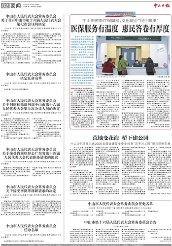 九、审议2026年中山市民生实事项目的报告;