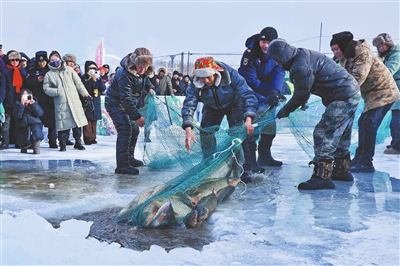 1月23日,作为黑龙江省“冷水鱼·冬捕季”分会场之一,黑龙江省同江市在街津口赫哲族乡修恩湖畔举行冬捕活动。本次活动融合民族渔猎、民俗体育等内容,让人们沉浸式领略冰雪盛景,感受赫哲民俗文化魅力。新华社 发