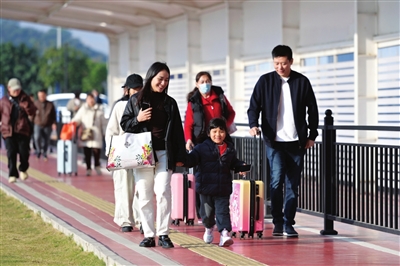 2026年春运于2月2日启动,至3月13日结束,共计40天。图为春运首日,返乡的旅客们带着行李到中山站乘车。本报记者 缪晓剑 摄