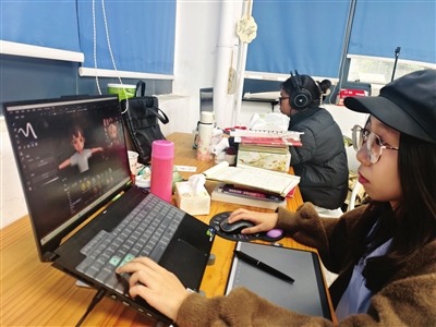 晚上8时,该校动漫制作技术专业的实训室内依然灯火璀璨。24级动漫高本班黄心妍和24级动漫(1)班吴锦豪等四人正分工制作动画模型。“这个寒假,我们从零基础学会了操作Maya、ZBrush等软件,以前两三天才能完成一套模型还常出错,现在一天就能做好,基本零失误。”黄心妍笑着说。这个四人组合的小团队,每天8:30开始练习,有时忙碌到23:00。