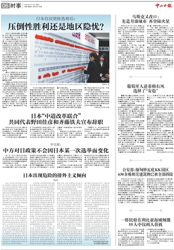 中方对日政策不会因日本某一次选举而变化