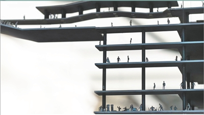 在朱逸蕾重点推荐的“十个思想”板块,十位国际顶尖空间思想家的悬挂装置令人驻足。受限于50公斤的悬挂承重,艺术家们以巧思突破物理限制:王澍+陆文宇的《飞梁》用“小木作”诠释传统建筑智慧,刘家琨的《悬挂西村》寄寓重构社会基本“单位”的雄心,张永和的《窗柱》以拉索柱体与透视盒子玩转学理与视觉的游戏;藤本壮介的《共鸣都市 2025》以球形结构勾勒未来城市图景,胡泳的《人的困镜》则直指人工智能时代人类的生存命题。朱逸蕾透露,这些作品既要传递关于城市发展的共同思考,又要适应场地条件,从策划到落地的每一步都是挑战,“10月中旬确定方案后,所有工作同步推进,能让宏大主题落地为可感的展览,离不开跨领域团队的协作。”
