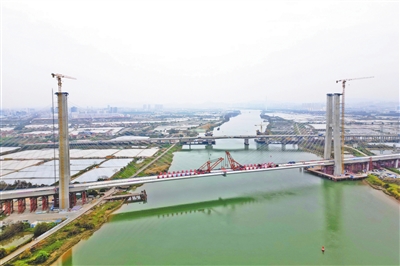 2月10日,随着一段长6米、宽17米、重约72吨的钢梁精准吊装到位,由厦深铁路广东有限公司建设、中铁广州工程局集团有限公司施工的国内首座大跨度双边主梁混合组合梁高速铁路斜拉桥——深江铁路广中江特大桥跨鸡鸦水道主桥顺利合龙。这是深江铁路全线首个实现合龙的主桥,标志着该项目建设取得关键性突破,为全线后续架梁、铺轨等施工奠定了坚实基础。