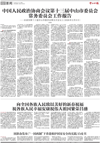 国内统一刊号:CN44-0126 代号:45-47 中山日报社出版 Email:zsrbnews@163.com