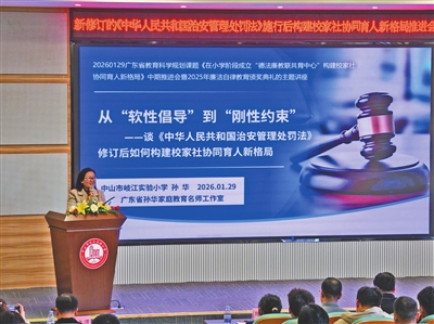 “学校成为主动联防的核心,新法明确了学校对严重欺凌事件的强制报告责任,失职将被追责,学校须建立内部预警与处置流程。”中山市岐江实验小学校长、广东省家庭教育名师工作室主持人孙华表示,学校需成为系统网络的“枢纽”,主动联系法治副校长、对接社区资源、指导家庭。