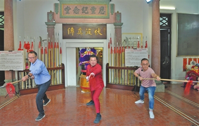 从小与祖父感情甚笃的马量豪也因此与故乡产生了情感,让他长大以后自发跟随祖父的脚步投身家乡建设。他不仅常带家人回来探亲,也在积极推动香港中山两地青年的体育交流。“我本人热爱足球,是业余的足球裁判,我儿子是香港足球总会的教练。我希望能以足球为媒,组织更多港澳青少年回中山参观交流,让更多青少年,像我当年那样,通过寻根之旅爱上家乡。”去年,他的儿子协助安排香港中西区足球队青年运动员参与了南区街道第一届社区足球联赛闭幕式暨大湾区足球交流活动。此次回村,他和马维德考察了位于马永灿祖居“恩重纪念堂”内的“南区沙涌(良都)龙狮武术艺术馆”,与当地青年交流中山市非遗——沙涌马家枪。