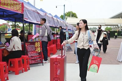 一辆辆列车相继满载抵达,中山站的户外广场上始终人声鼎沸。“来我们这里看看,上市公司,福利齐全!”“我们不定期举办内外培训课程,建立完善的晋升机制!”“我们法定假期、年假、婚假都是有薪假!”不少企业的招聘专员手持招聘简章,热情地向每一位刚走出车站的旅客打招呼。