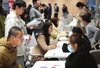 2月25日,求职者与招聘企业代表在浙江省杭州市的招聘会上洽谈。近日,全国各地举行形式多样的招聘活动,助力就业。