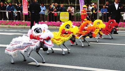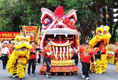 巡游活动中,十余支来自各镇街的非遗表演队成为风景线。在黄圃麒麟舞表演方阵,十只麒麟摇头摆尾、憨态可掬。细心观众发现,今年每一只麒麟都拥有专属配色,橙红者如烈焰,青蓝者似碧波,金鳞者若祥云。“往年麒麟头款式单一,今年我们做到‘一麒一色’。”黄圃麒麟舞市级非遗代表性传承人谭照星在现场向记者介绍,全新升级的麒麟道具融入鳌鱼、鲤鱼、凤凰等吉祥元素,色彩愈发大胆夺目。