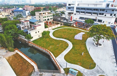 濠二小区是濠头涌流经的重要区域,也是濠头涌“水岸经济”的探索区。郑结荣在濠二小区工作十余年,最清楚过去的模样:濠头涌黑臭多年,是周边居民的“心病”;乱搭乱建的铁皮围挡遮了一路,村里人为了掩盖脏乱,花钱用铁皮把死角围起来;闲置侨房杂草丛生、无人管护,空地要么是杂物堆场,要么是卫生死角。