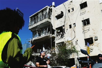 3月24日,在以色列中部城市特拉维夫,应急人员在导弹袭击现场处置。据伊朗伊斯兰共和国广播电视台24日报道,伊朗当天向以色列发动新一轮导弹袭击,“导弹已突破以色列多个导弹防御系统”。新华社 发
