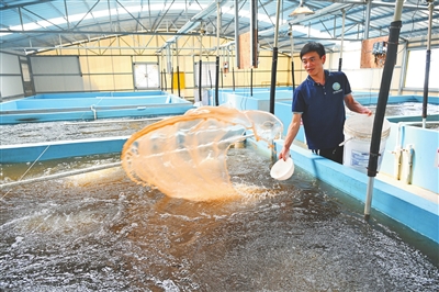 “虾是直肠动物,吃了就排,排了就得吃,基本2个小时就得喂食一次,还要加入一些菌类调理虾苗肠道、改善水环境。”泊基公司资深技术员庞伟志说。除了定时投喂虾片,他还要用蛋白含量超过60%的丰年虫为虾苗“补充营养”。
