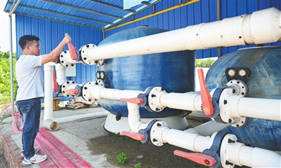 厂内随处可见各种大型机械,或罐状或管状,环绕在车间四周,延伸至养殖塘口。“这些都是水处理设备。”林华贵介绍说,这里采用无藻水培育,从沙滤缸沉淀、活性炭吸附,到紫外线消毒、精密过滤器过滤,再经大型臭氧机脱色杀菌,一套物理水处理流程下来,水体浊度达到4-8NTU,远超自来水的8-12NTU,“甚至达到饮用水标准,最大程度减少了各种病毒、病菌的危害。”