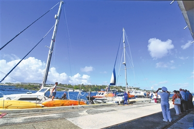 新华社记者在现场看到,当地民众手持古巴国旗聚集在码头,对靠岸船只鼓掌欢迎,并高喊“国际团结万岁!”“打倒帝国主义!”“古巴并不孤单!”等口号。