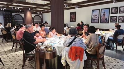 “四囍咖啡”附近的“孙奇珍茶楼”,同样是一派繁忙景象。清明假期前两天,茶楼从早上8点半营业到晚上8点半,客人络绎不绝。临近6日中午时分,记者看到该茶楼三层楼的用餐空间都已座无虚席。店长伍群英告诉记者,清明期间茶楼客流量很大,“排号一度排到100多号,翻台率差不多是平时的5倍,每天人流量2000多人次。”