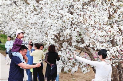 近日,甘肃省兰州市皋兰县什川镇百年梨园内梨花怒放,吸引市民游客前来踏青赏花,感受浓浓春意。