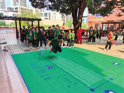 其中,朗晴小学以“课室门口即运动场”为理念,将运动设施布局在校园各个角落。