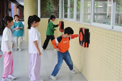 紫岭小学在每个班级门口安装摸高器,学子们一出班级门口即可体验。同时,该校在两个200多平方米的天台上搭建围网、增设乒乓球桌,划定四楼以上学生专属活动区域。在公共区域,学校分批投放呼啦圈、篮球、足球、曲棍球杆、毽球、长绳等运动器材。
