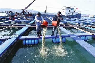 随着气温逐渐回暖,福建省宁德市海上大黄鱼养殖区迎来春季投苗黄金期。连日来,养殖户们抢抓海水温度稳定在12℃左右的窗口期,陆续投放大黄鱼鱼苗,预计今年全市将投放约25亿尾本土培育的大黄鱼鱼苗,海上“春耕”正有序展开。
